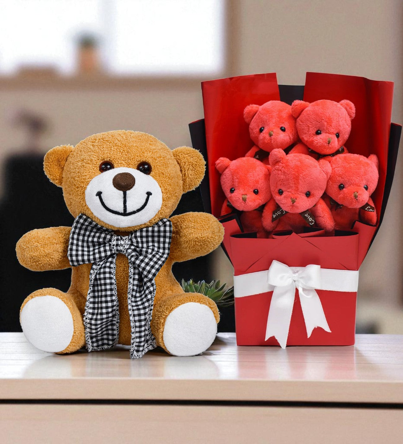 Sevgiliye Özel Peluş Ayıcıklarla Özel Buket ve Papyonlu Ayısıyla Birlikte - Sevgiliye Hediye